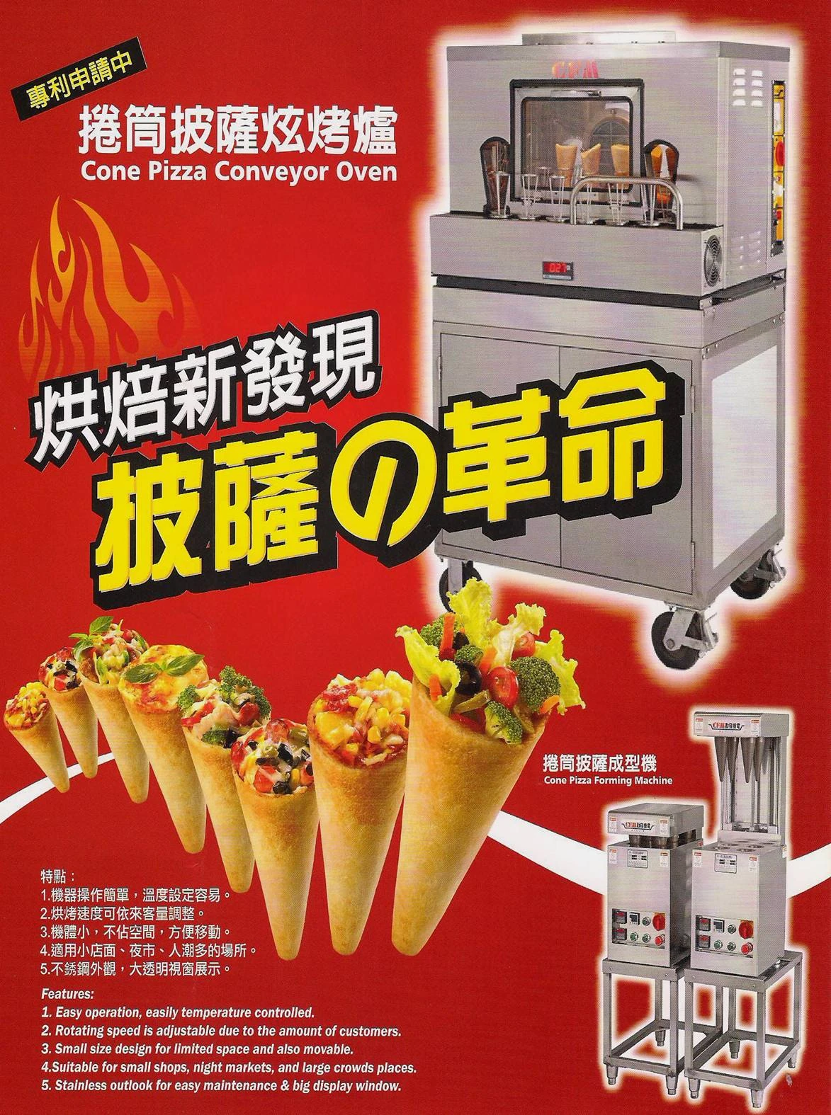 捲筒披薩烤爐可以烤出口感極佳的薄脆餅皮, 特別的是:內餡是一層一層照你喜歡的各種食材添加上去。 具備全方位均衡營養、餡料飽滿口感佳、